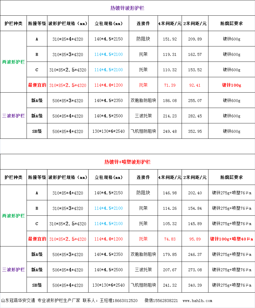 下面是常用規(guī)格波形護欄價格供您參考:
