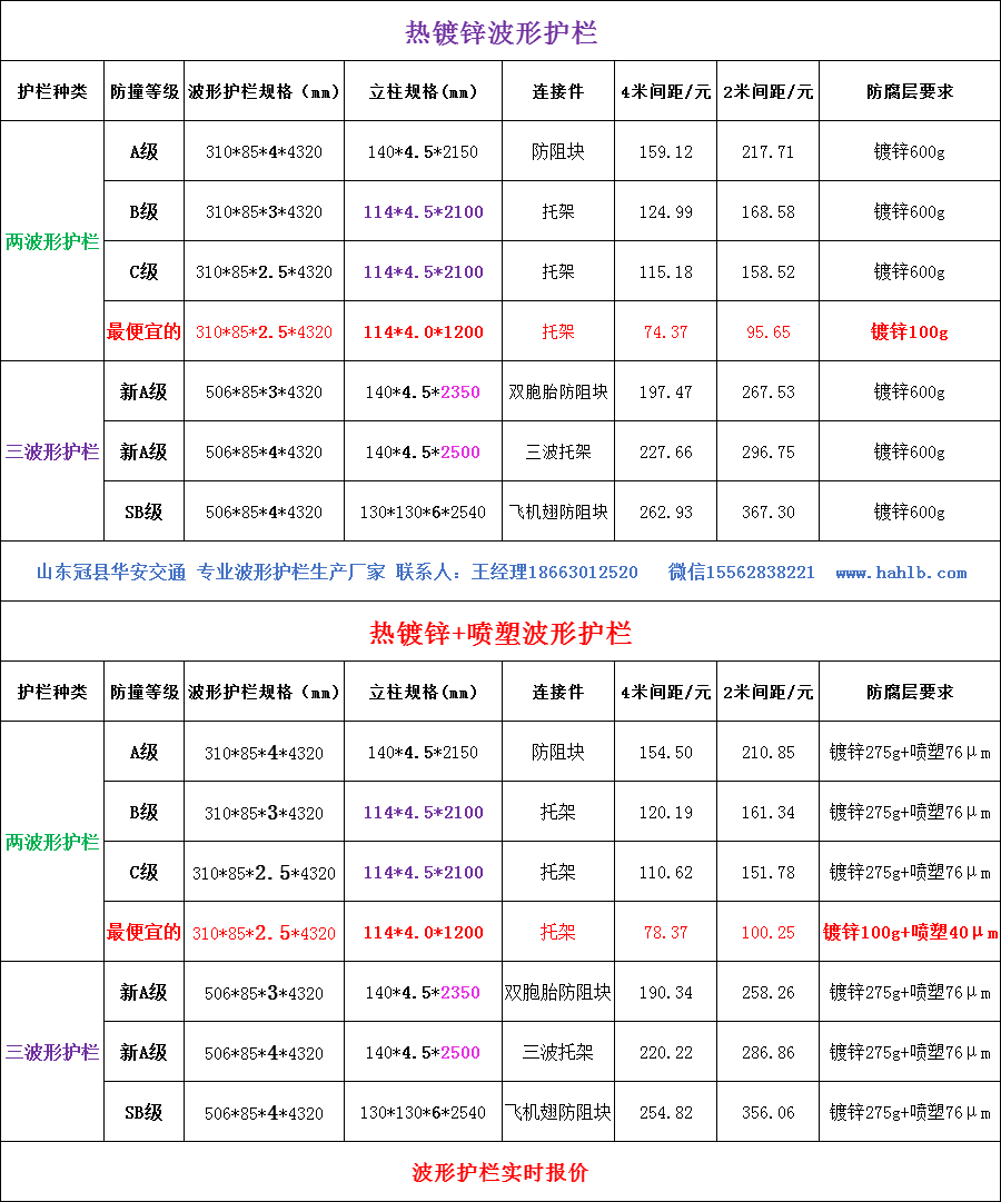 以下是近期鋼材價格核算的幾個常用規(guī)格波形護欄報價,供您參考: