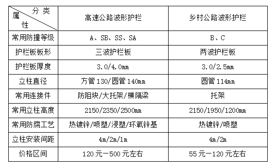 要購買波形護(hù)欄,首先要了解有關(guān)波形護(hù)欄的基本信息,比如規(guī)格等級(jí)、防腐工藝、安裝方式,設(shè)置位置等等。道路波形護(hù)欄較為常用的大致可以分為高速公路波形護(hù)欄和鄉(xiāng)村公路護(hù)欄兩種。詳細(xì)情況我們可以從下表中看到: