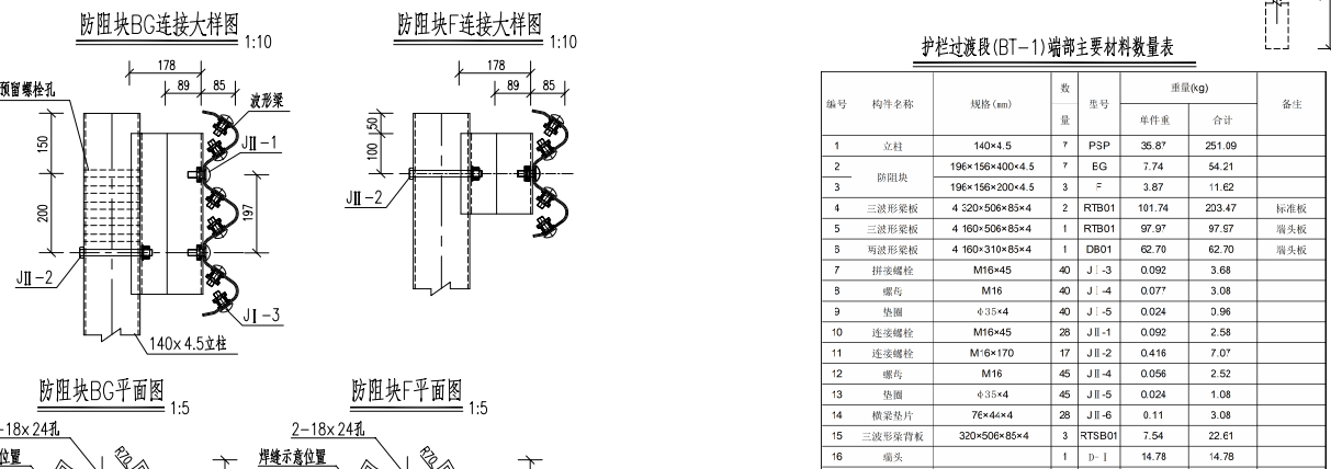 下面可參考三波形護(hù)欄BT端頭圖紙: