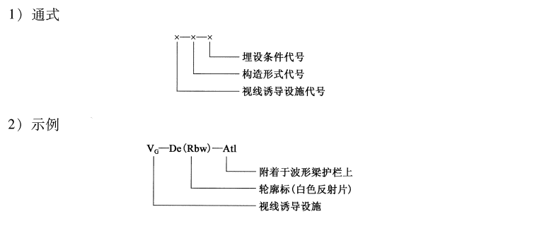 一、 設置于公路路基上的波形護欄標準段設計代號由護欄構造形式代號、防護等級代號、埋設條件代號三部分組成。各種代號規定如下: