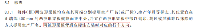 8、增加了兩波形梁板背后應標注安裝時對應的行車方向的要求,這樣可以避免很多因安裝錯誤引發的事故發生。