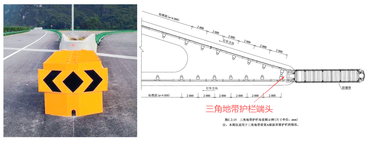 交通分流處三角地帶波形梁護欄的端頭處理,應(yīng)符合下列規(guī)定: